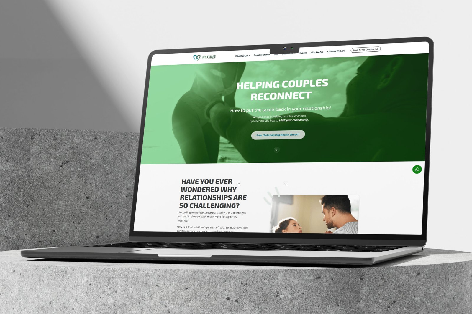 Retune Life, led by relationship specialists Amanda and John, offers professional coaching and workshops focused on emotional connection, communication, and conflict resolution. The project's challenge was to build a site that immediately establishes empathy and trust to guide emotionally vulnerable users toward high-value services like 1-to-1 coaching and in-person workshops.
