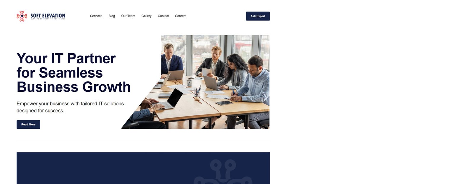 Soft Elevation is a comprehensive IT Partner dedicated to empowering business growth through tailored services like Web Development, Mobile App Development, and strategic UI/UX Design. Operating globally, their mission is to drive technological advancement and seamless digital transformation for clients.